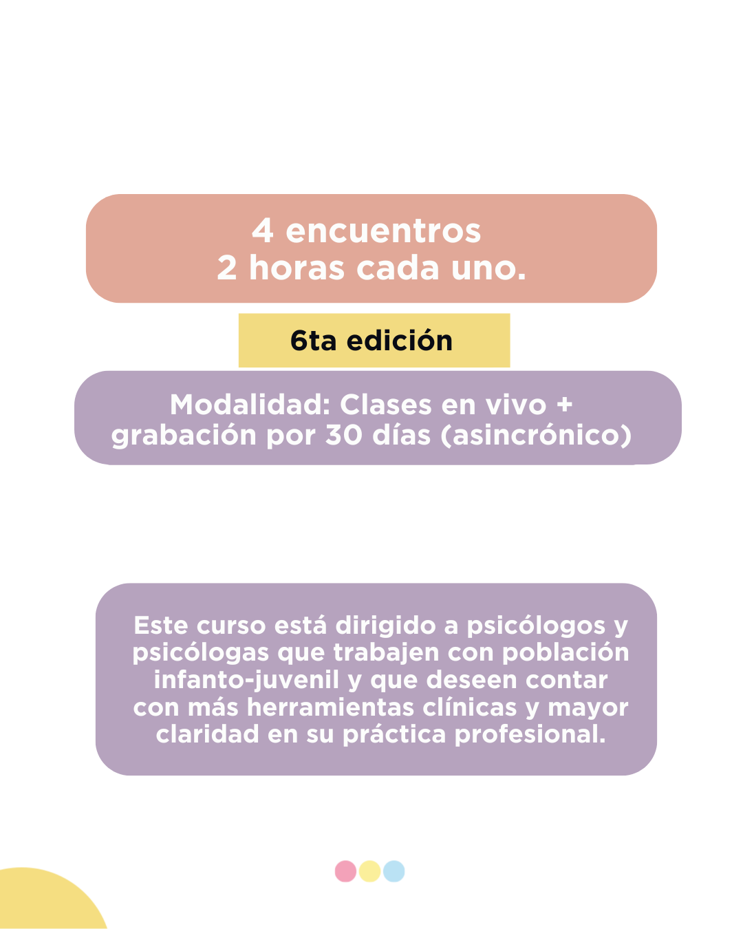 Este curso se fue construyendo y ajustando edición tras edición, a partir de la experiencia clínica real, las preguntas que surgen en la práctica cotidiana y las necesidades concretas de quienes trabajan en psicoterapia infanto-juvenil.